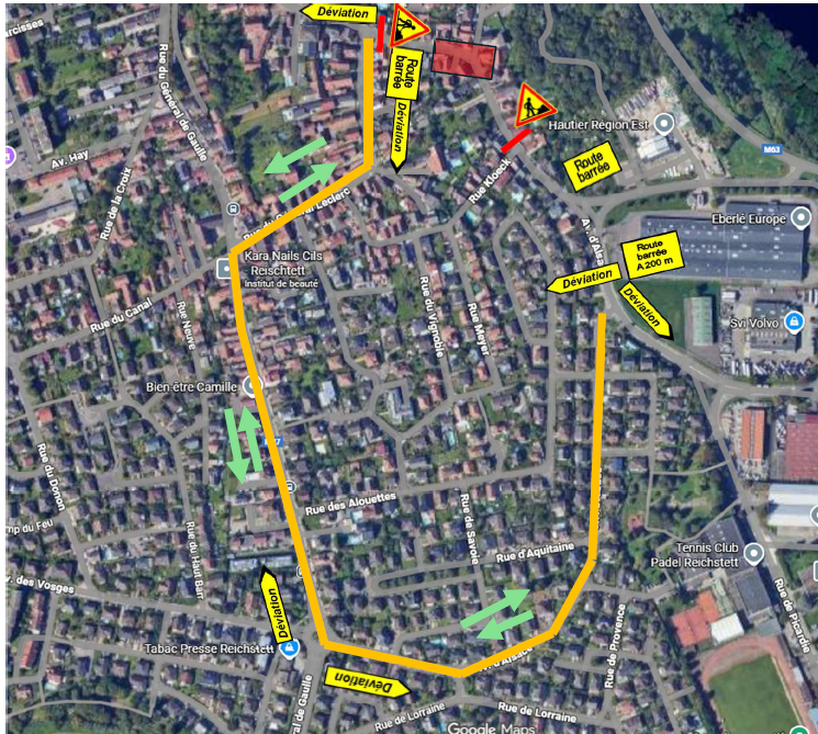 La route sera barrée pendant toute la durée des travaux et une déviation sera instaurée via l'avenue d'Alsace. L'accès au médecin reste toutefois possible EN VOITURE
