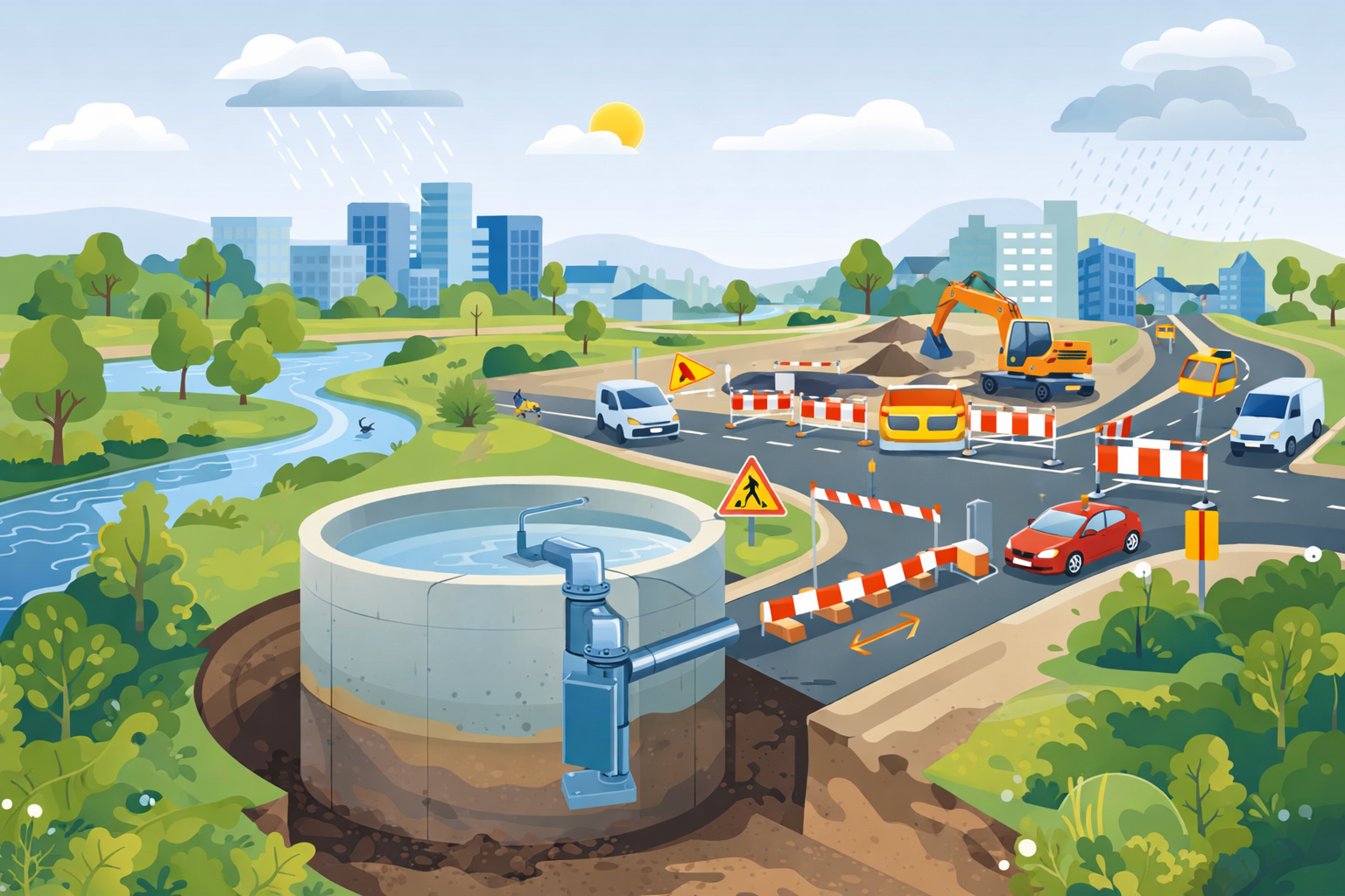 En cas de pluie, les eaux seront temporairement stockées dans le bassin, puis renvoyées vers le réseau après l’épisode pluvieux, limitant ainsi les rejets directs dans la nature.